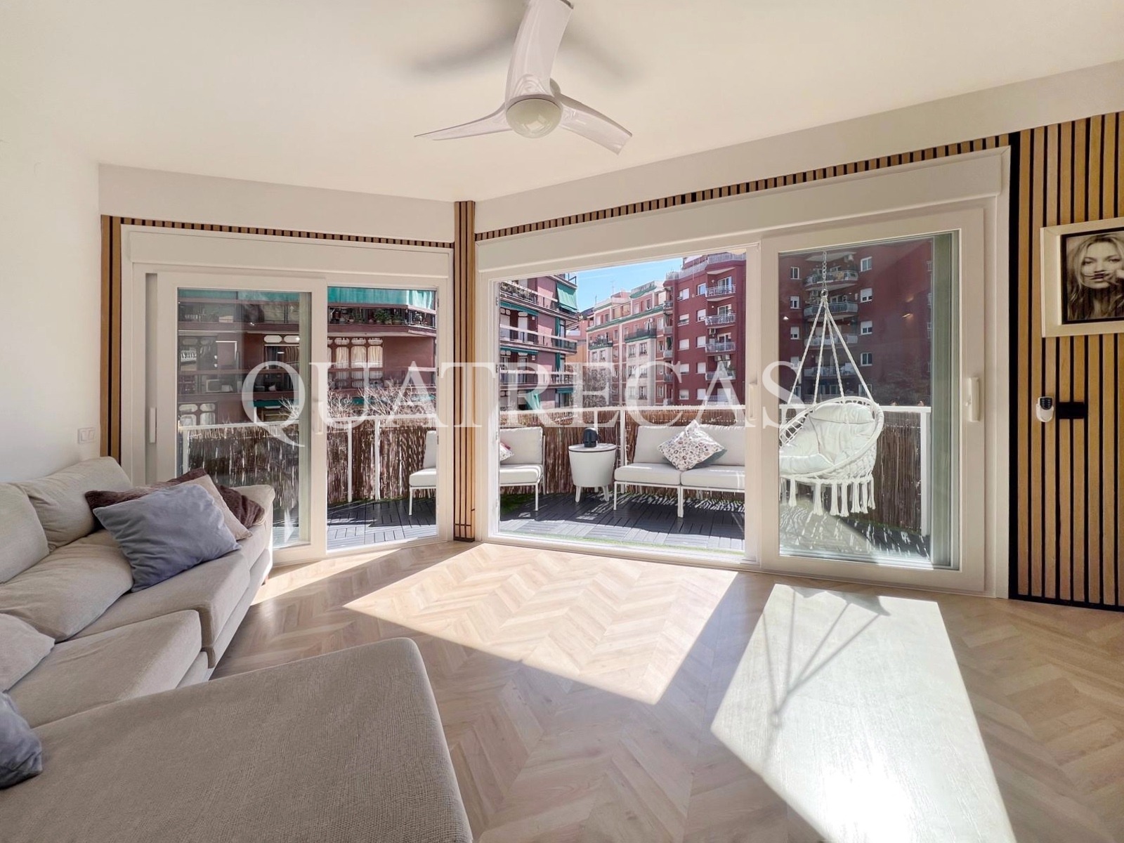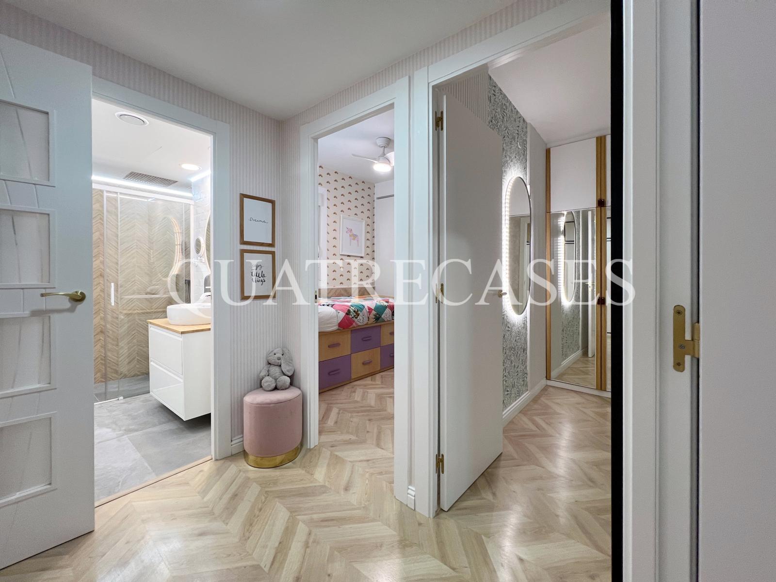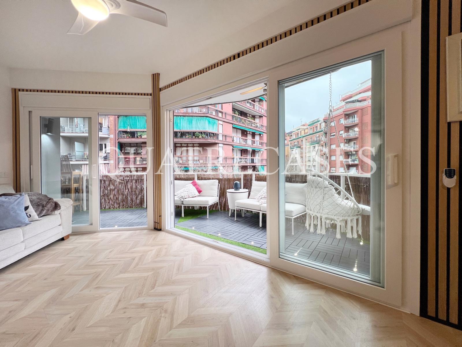 Exclusiva propiedad con terraza muy soleada. Os presentamos esta increíble pieza única donde disfrutar del sol y el silencio todos los días del año. Este piso espectacular, ubicado en una esquina sur, te ofrece una experiencia de vida confortable con un toque moderno en cada rincón. Todas las estancias principales están diseñados para aprovechar al máximo la luz natural. A ello contribuyen las amplias ventanas, unas puertas acristaladas que se pliegan por completo y una terraza soleada que recorre el cincuenta porciento de la propiedad, ofreciendo unas magníficas vistas despejadas y mucha ventilación.