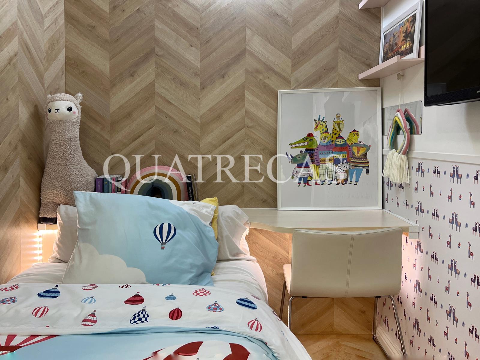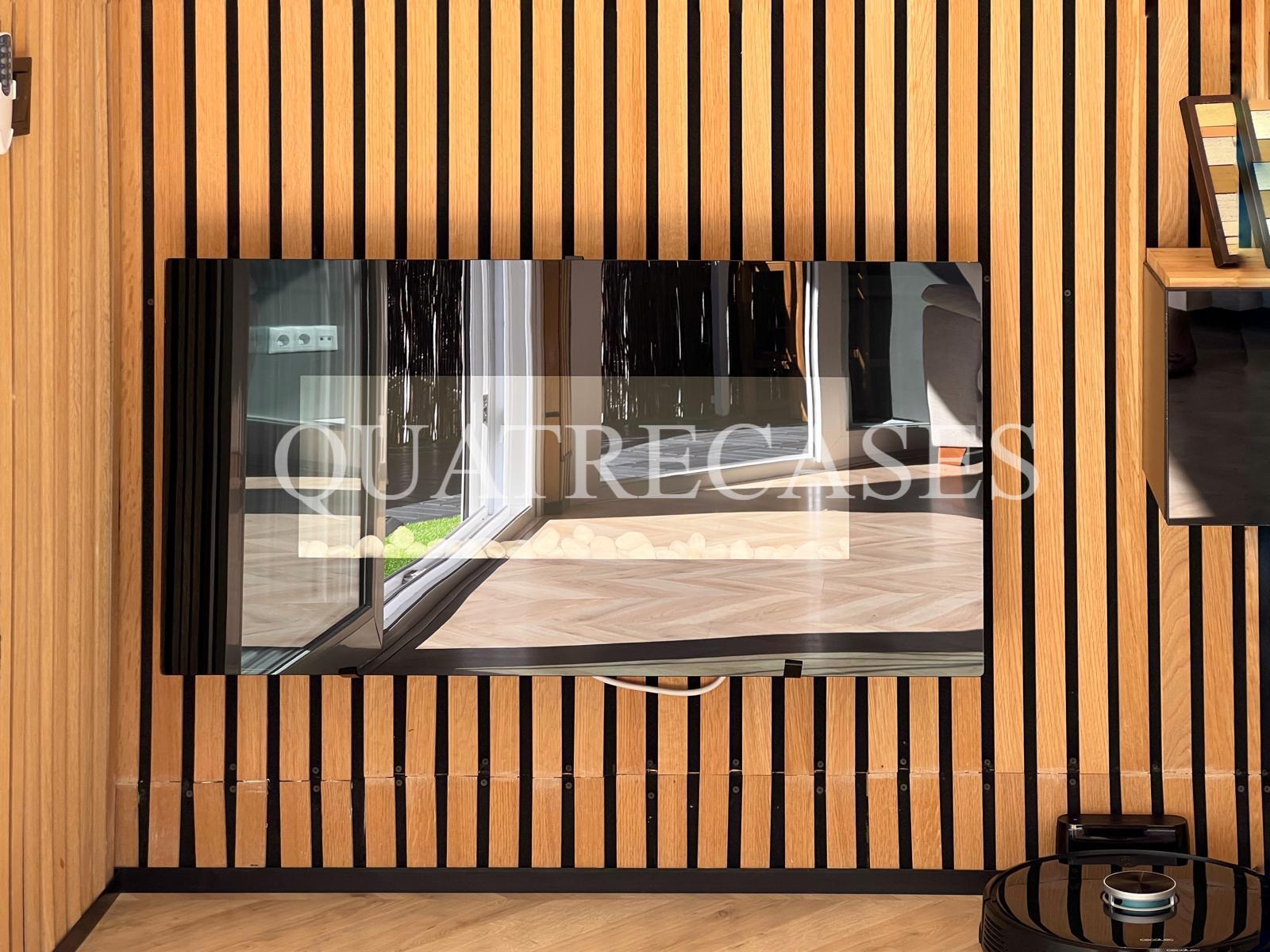 La vivienda cuenta con un concepto diáfano en la zona de estar, donde los acabados de madera de primerísima calidad y la tarima flotante con una textura maravillosa aportan calidez y elegancia. Dispone de 4 dormitorios (2 dobles y 2 individuales), 2 baños completos de diseño vanguardista y una cocina que hará las delicias de cualquier chef. Las paredes insonorizadas garantizan tranquilidad en cada uno de las estancias.